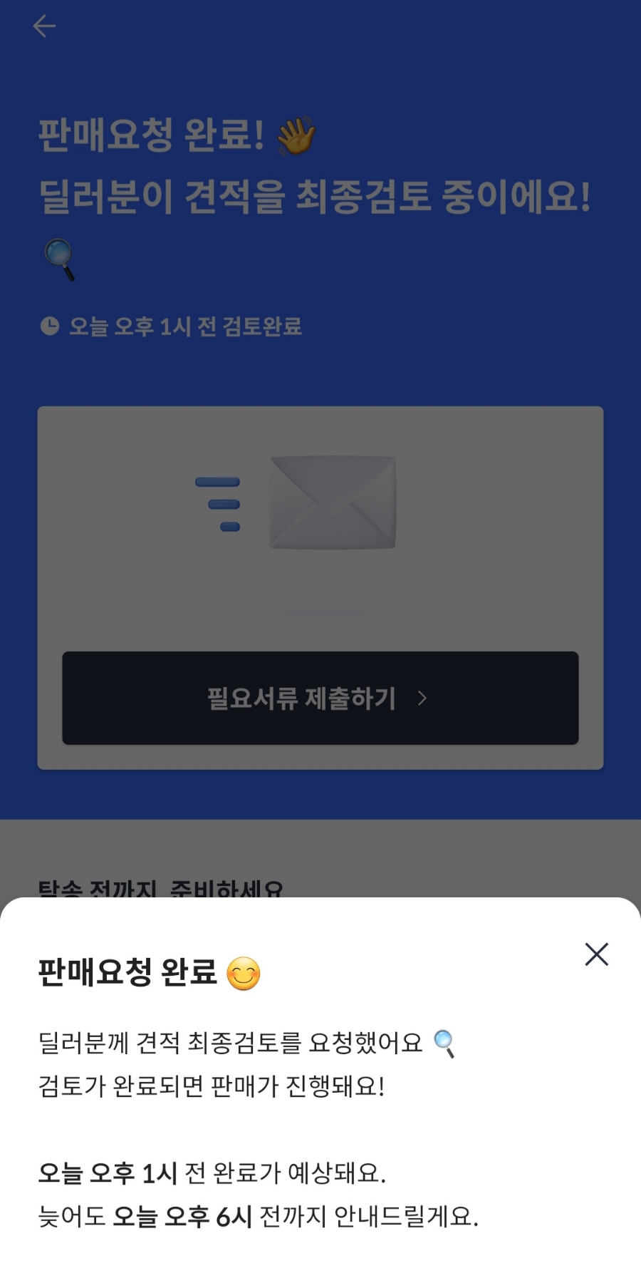 방문 예정된 날짜가 오면 탁송 기사님이 방문 하게 되시고 , 미리 준비해 두신 차량 매각에 필요한 서류를 전달 드립니다.