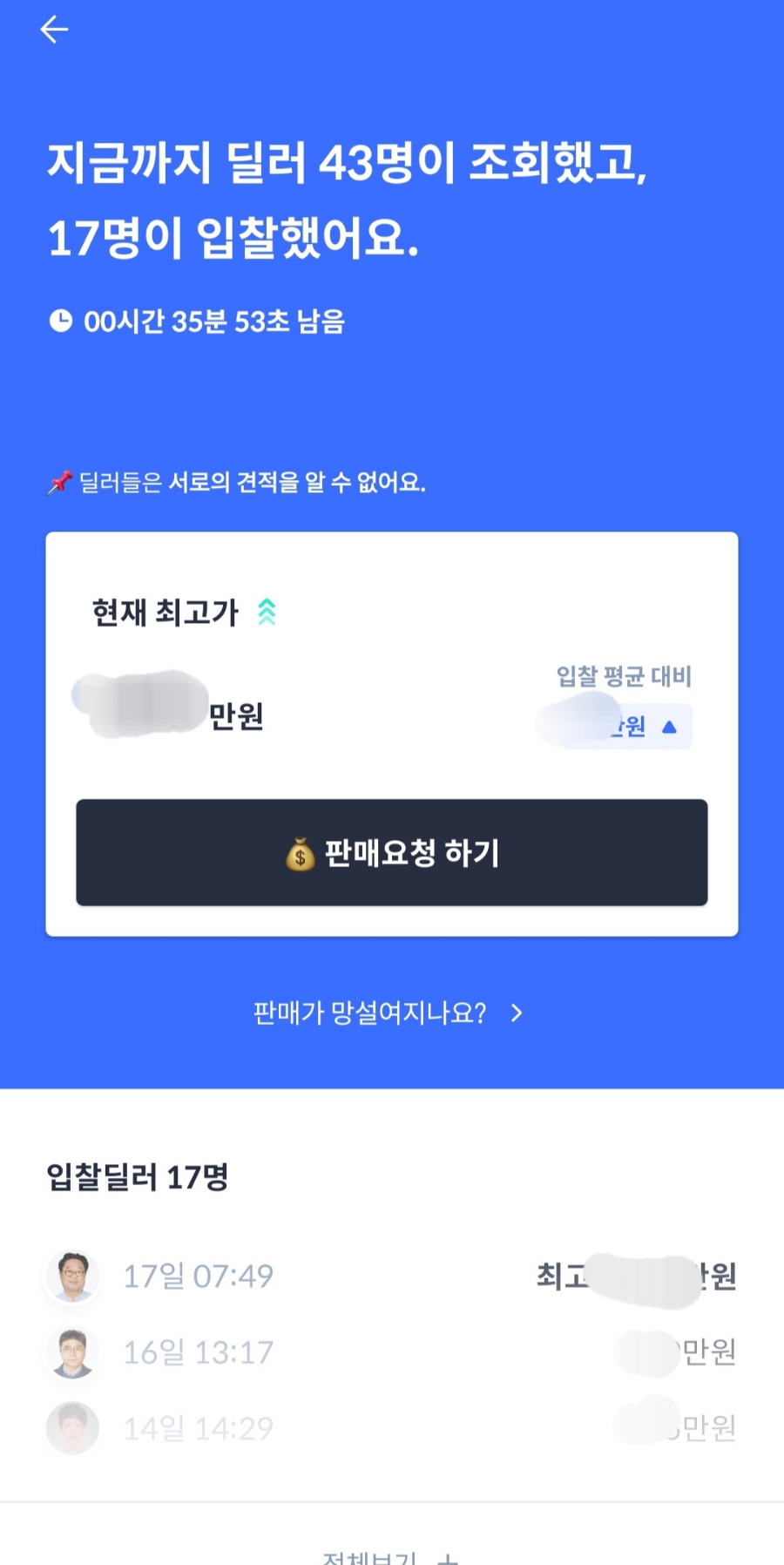 경매 진행 후 최고가 입찰가격이 마음에 드신다면 감가없이 바로 그 가격에 차량을 팔 수 있습니다. 만약 입찰 가격이 마음에 들지 않으신다면 판매를 하지 않을 수도 있습니다.