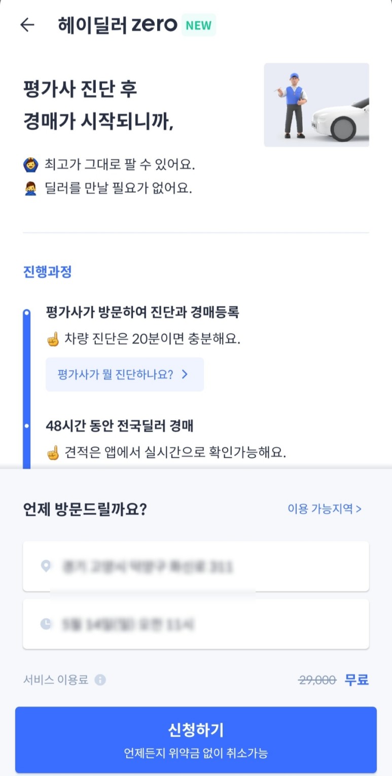 참고로 헤이딜러제로의 경우 원래 이용수수료 29000원이지만 현재 무료로 이용가능합니다.